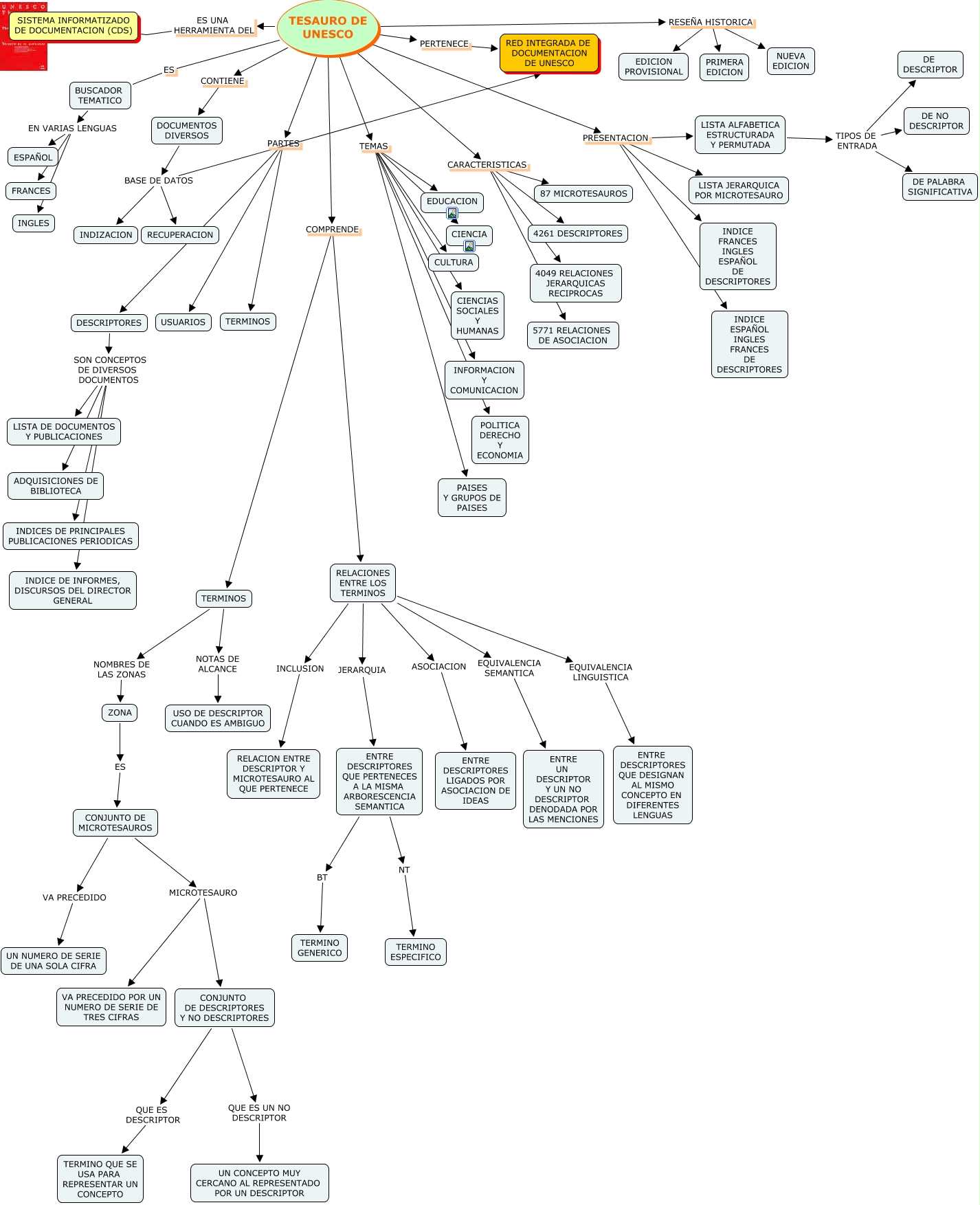 Este Cmap, tiene información relacionada con: Tesauro de la UNESCO, CONJUNTO DE MICROTESAUROS MICROTESAURO VA PRECEDIDO POR UN NUMERO DE SERIE DE TRES CIFRAS, DOCUMENTOS DIVERSOS BASE DE DATOS RED INTEGRADA DE DOCUMENTACION DE UNESCO, TESAURO DE UNESCO TEMAS CIENCIAS SOCIALES Y HUMANAS, RELACIONES ENTRE LOS TERMINOS INCLUSION RELACION ENTRE DESCRIPTOR Y MICROTESAURO AL QUE PERTENECE, RELACIONES ENTRE LOS TERMINOS ASOCIACION ENTRE DESCRIPTORES LIGADOS POR ASOCIACION DE IDEAS, TESAURO DE UNESCO PARTES TERMINOS, RELACIONES ENTRE LOS TERMINOS EQUIVALENCIA SEMANTICA ENTRE UN DESCRIPTOR Y UN NO DESCRIPTOR DENODADA POR LAS MENCIONES, TESAURO DE UNESCO TEMAS EDUCACION, TESAURO DE UNESCO CONTIENE DOCUMENTOS DIVERSOS, TESAURO DE UNESCO PARTES USUARIOS, TESAURO DE UNESCO PRESENTACION LISTA ALFABETICA ESTRUCTURADA Y PERMUTADA, TESAURO DE UNESCO CARACTERISTICAS 4261 DESCRIPTORES, LISTA ALFABETICA ESTRUCTURADA Y PERMUTADA TIPOS DE ENTRADA DE NO DESCRIPTOR, DOCUMENTOS DIVERSOS BASE DE DATOS INDIZACION, BUSCADOR TEMATICO EN VARIAS LENGUAS ESPAÑOL, TESAURO DE UNESCO PRESENTACION INDICE FRANCES INGLES ESPAÑOL DE DESCRIPTORES, DESCRIPTORES SON CONCEPTOS DE DIVERSOS DOCUMENTOS ADQUISICIONES DE BIBLIOTECA, RELACIONES ENTRE LOS TERMINOS EQUIVALENCIA LINGUISTICA ENTRE DESCRIPTORES QUE DESIGNAN AL MISMO CONCEPTO EN DIFERENTES LENGUAS, TESAURO DE UNESCO CARACTERISTICAS 5771 RELACIONES DE ASOCIACION, TESAURO DE UNESCO PERTENECE RED INTEGRADA DE DOCUMENTACION DE UNESCO