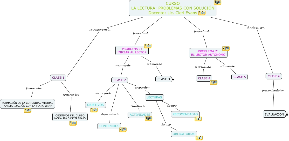 Este Cmap, tiene información relacionada con: Mapa lectura, EVALUACIÓN de los CONTENIDOS, EVALUACIÓN del CURSO, CURSO LA LECTURA: PROBLEMAS CON SOLUCIÓN Docente: Lic. Cleri Evans presenta el PROBLEMA 2: EL LECTOR AUTÓNOMO, CLASE 3 planteará ACTIVIDADES, CLASE 2 alcanzará OBJETIVOS, CLASE 6 proponiendo la EVALUACIÓN, CURSO mediante ENCUESTA ON LINE, CLASE 3 desarrollará CONTENIDOS, LECTURAS de tipo OBLIGATORIAS, PROBLEMA 2: EL LECTOR AUTÓNOMO a través de CLASE 4, CLASE 2 planteará ACTIVIDADES, PROBLEMA 1: INICIAR AL LECTOR a través de CLASE 2, CURSO LA LECTURA: PROBLEMAS CON SOLUCIÓN Docente: Lic. Cleri Evans se inicia con la CLASE 1, CURSO LA LECTURA: PROBLEMAS CON SOLUCIÓN Docente: Lic. Cleri Evans presenta el PROBLEMA 1: INICIAR AL LECTOR, PROBLEMA 2: EL LECTOR AUTÓNOMO a través de CLASE 5, PROBLEMA 1: INICIAR AL LECTOR a través de CLASE 3, CLASE 1 favorece la FORMACIÓN DE LA COMUNIDAD VIRTUAL FAMILIARIZACIÓN CON LA PLATAFORMA, CONTENIDOS mediante TRABAJO PRÁCTICO INTEGRADOR, LECTURAS de tipo RECOMENDADAS, CLASE 3 alcanzará OBJETIVOS