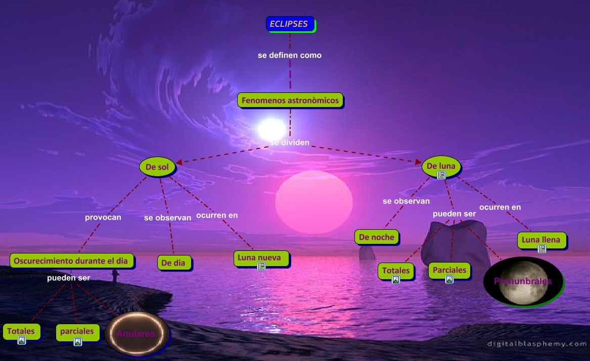 Este Cmap, tiene información relacionada con: MODULO2_RAMIREZZAVALETA.E, De sol ocurren en Luna nueva, ECLIPSES se definen como Fenomenos astronòmicos, Oscurecimiento durante el dia pueden ser Totales, De luna pueden ser Prenunbrales, Fenomenos astronòmicos se dividen De luna, Oscurecimiento durante el dia pueden ser Anulares, De luna pueden ser Parciales, Fenomenos astronòmicos se dividen De sol, De sol provocan Oscurecimiento durante el dia, Oscurecimiento durante el dia pueden ser parciales, De luna se observan De noche, De sol se observan De dia, De luna pueden ser Totales, De luna ocurren en Luna llena