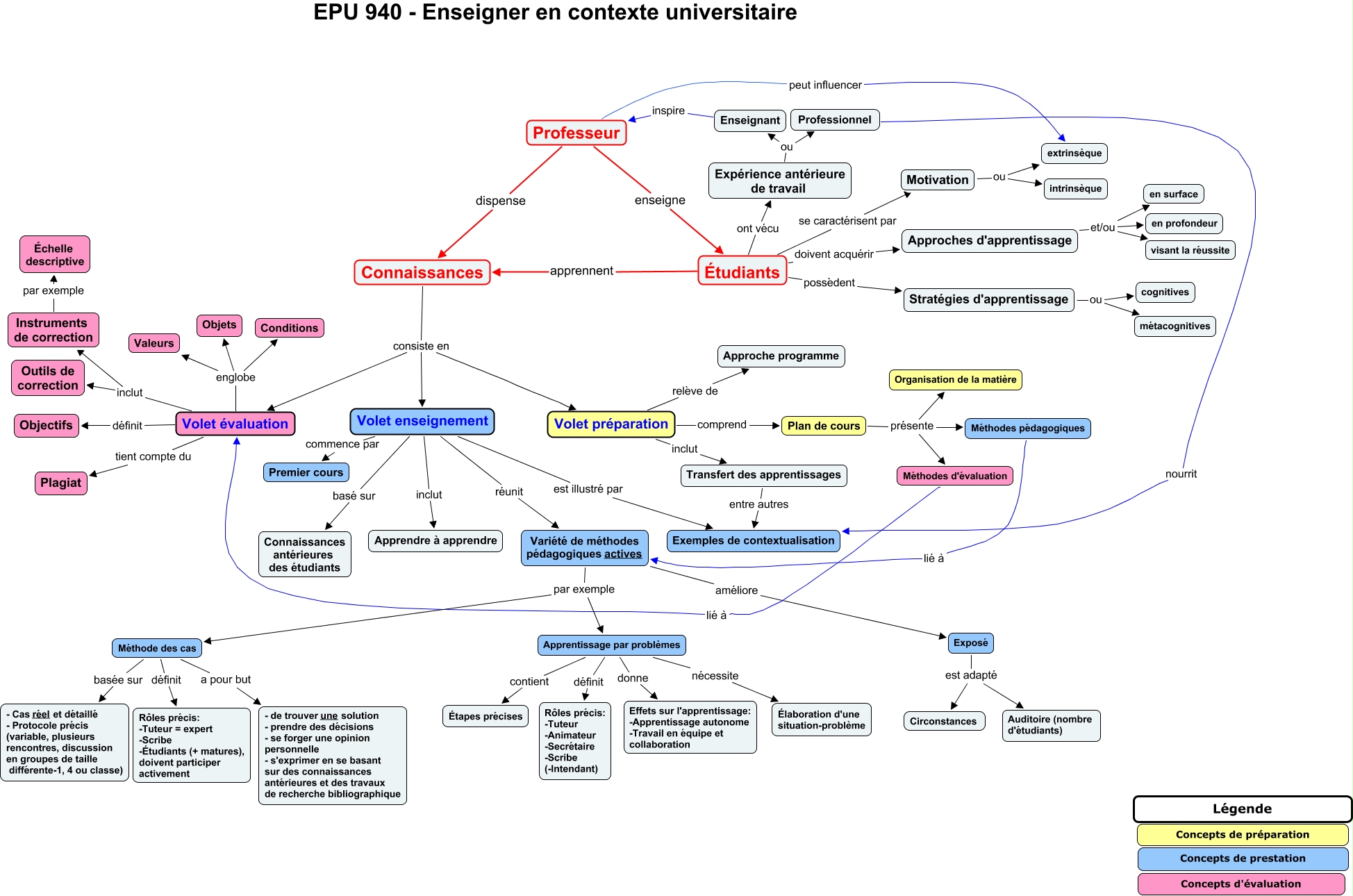 Cette carte de concepts créée avec IHMC CmapTools traite de: Carte_NicoleWilb2, Variété de méthodes pédagogiques actives par exemple Méthode des cas, Plan de cours présente Méthodes d'évaluation, Volet enseignement est illustré par Exemples de contextualisation, Expérience antérieure de travail ou Professionnel, Connaissances consiste en Volet préparation, Enseignant inspire Professeur, Professeur dispense Connaissances, Volet évaluation englobe Valeurs, Stratégies d'apprentissage ou métacognitives, Motivation ou intrinsèque, Étudiants se caractérisent par Motivation, Méthode des cas a pour but - de trouver une solution - prendre des décisions - se forger une opinion personnelle - s'exprimer en se basant sur des connaissances antérieures et des travaux de recherche bibliographique, Variété de méthodes pédagogiques actives par exemple Apprentissage par problèmes, Étudiants possèdent Stratégies d'apprentissage, Exposé est adapté Auditoire (nombre d'étudiants), Méthode des cas définit Rôles précis: -Tuteur = expert -Scribe -Étudiants (+ matures), doivent participer activement, Volet évaluation englobe Conditions, Volet préparation comprend Plan de cours, Volet enseignement réunit Variété de méthodes pédagogiques actives, Plan de cours présente Méthodes pédagogiques