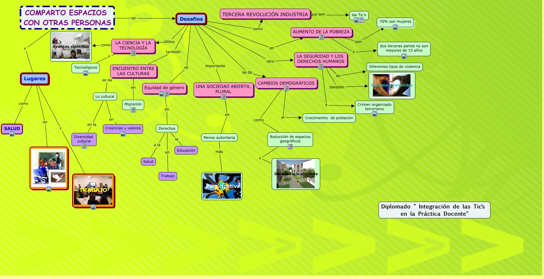 This Concept Map, created with IHMC CmapTools, has information related to: SEMANA5_JARAMILLO LEZAMA, Derechos en Trabajo, Derechos a la Salud, Desafios es Equidad de género, ENCUENTRO ENTRE LAS CULTURAS se da Lo cultural, Lugares en ESCUELA, TERCERA REVOLUCIÓN INDUSTRIA que son las Tic's, Lugares y TRABAJO, Desafios como TERCERA REVOLUCIÓN INDUSTRIA, ENCUENTRO ENTRE LAS CULTURAS en Migración, Desafios último LA CIENCIA Y LA TECNOLOGÍA, LA CIENCIA Y LA TECNOLOGÍA y Tecnológicos, CAMBIOS DEMOGRÁFICOS como Reducción de espacios geográficos, AUMENTO DE LA POBREZA y dos terceras partes no son mayores de 15 años, Menos autoritaria más Participativa, Lugares como SALUD, Desafios importante UNA SOCIEDAD ABIERTA, PLURAL, LA CIENCIA Y LA TECNOLOGÍA como Avances científico, LA SEGURIDAD Y LOS DERECHOS HUMANOS también Racismo y xenofobia, COMPARTO ESPACIOS CON OTRAS PERSONAS en Desafios, Desafios se da CAMBIOS DEMOGRÁFICOS