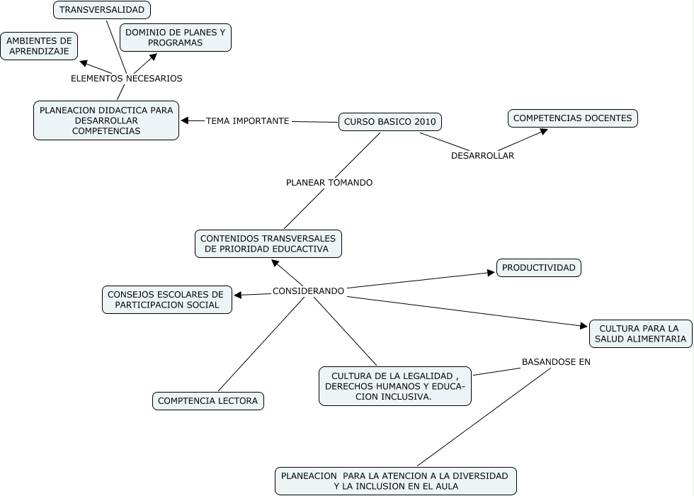 Este Cmap, tiene información relacionada con: CURSO BASICO 2010, TRANSVERSALIDAD ELEMENTOS NECESARIOS AMBIENTES DE APRENDIZAJE, PLANEACION DIDACTICA PARA DESARROLLAR COMPETENCIAS ELEMENTOS NECESARIOS AMBIENTES DE APRENDIZAJE, PLANEACION DIDACTICA PARA DESARROLLAR COMPETENCIAS ELEMENTOS NECESARIOS DOMINIO DE PLANES Y PROGRAMAS, COMPTENCIA LECTORA CONSIDERANDO CONTENIDOS TRANSVERSALES DE PRIORIDAD EDUCACTIVA, COMPTENCIA LECTORA CONSIDERANDO PRODUCTIVIDAD, CURSO BASICO 2010 PLANEAR TOMANDO CONTENIDOS TRANSVERSALES DE PRIORIDAD EDUCACTIVA, CURSO BASICO 2010 TEMA IMPORTANTE PLANEACION DIDACTICA PARA DESARROLLAR COMPETENCIAS, CULTURA DE LA LEGALIDAD , DERECHOS HUMANOS Y EDUCA- CION INCLUSIVA. BASANDOSE EN PLANEACION PARA LA ATENCION A LA DIVERSIDAD Y LA INCLUSION EN EL AULA, COMPTENCIA LECTORA CONSIDERANDO CULTURA PARA LA SALUD ALIMENTARIA, COMPTENCIA LECTORA CONSIDERANDO CULTURA DE LA LEGALIDAD , DERECHOS HUMANOS Y EDUCA- CION INCLUSIVA., TRANSVERSALIDAD ELEMENTOS NECESARIOS DOMINIO DE PLANES Y PROGRAMAS, COMPTENCIA LECTORA CONSIDERANDO CONSEJOS ESCOLARES DE PARTICIPACION SOCIAL, CURSO BASICO 2010 DESARROLLAR COMPETENCIAS DOCENTES