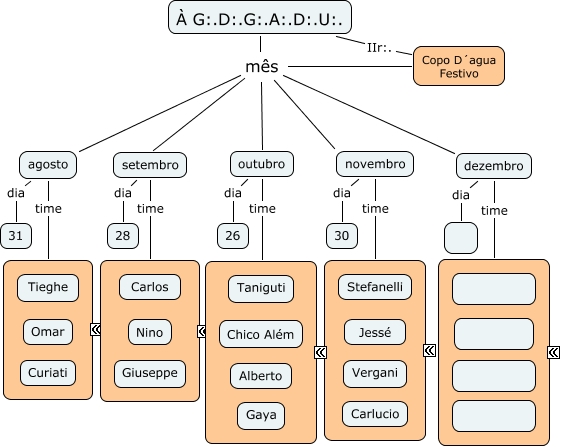 Esse mapa conceitual, produzido no IHMC CmapTools, tem a informação relacionada a: Copo dagua 2o semetre 2010 - grupo de IIr, À G:.D:.G:.A:.D:.U:. mês novembro, agosto dia 31, setembro time ????, À G:.D:.G:.A:.D:.U:. mês setembro, Copo D´agua Festivo IIr:. À G:.D:.G:.A:.D:.U:., outubro time ????, À G:.D:.G:.A:.D:.U:. mês agosto, setembro dia 28, novembro dia 30, novembro time ????, agosto time ????, À G:.D:.G:.A:.D:.U:. mês Copo D´agua Festivo, outubro dia 26, À G:.D:.G:.A:.D:.U:. mês dezembro, dezembro time ????, À G:.D:.G:.A:.D:.U:. mês outubro, dezembro dia