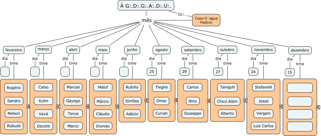 Esse mapa conceitual, produzido no IHMC CmapTools, tem a informação relacionada a: Copo dagua - grupo de IIr, agosto dia 25, outubro time ????, setembro dia 29, À G:.D:.G:.A:.D:.U:. mês fevereiro, fevereiro dia, À G:.D:.G:.A:.D:.U:. mês maio, junho time ????, fevereiro time ????, junho dia, outubro dia 27, À G:.D:.G:.A:.D:.U:. mês dezembro, À G:.D:.G:.A:.D:.U:. mês agosto, novembro dia 24, À G:.D:.G:.A:.D:.U:. mês novembro, agosto time ????, À G:.D:.G:.A:.D:.U:. mês Copo D´agua Festivo, dezembro time ????, À G:.D:.G:.A:.D:.U:. mês outubro, maio dia, À G:.D:.G:.A:.D:.U:. mês abril