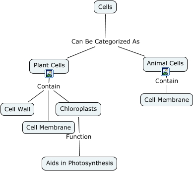 This Concept Map, created with IHMC CmapTools, has information related to: Andrea Appel, Plant Cells Contain Cell Membrane, Animal Cells Contain Cell Membrane, Cells Can Be Categorized As Plant Cells, Chloroplasts Function Aids in Photosynthesis, Plant Cells Contain Chloroplasts, Plant Cells Contain Cell Wall, Cells Can Be Categorized As Animal Cells