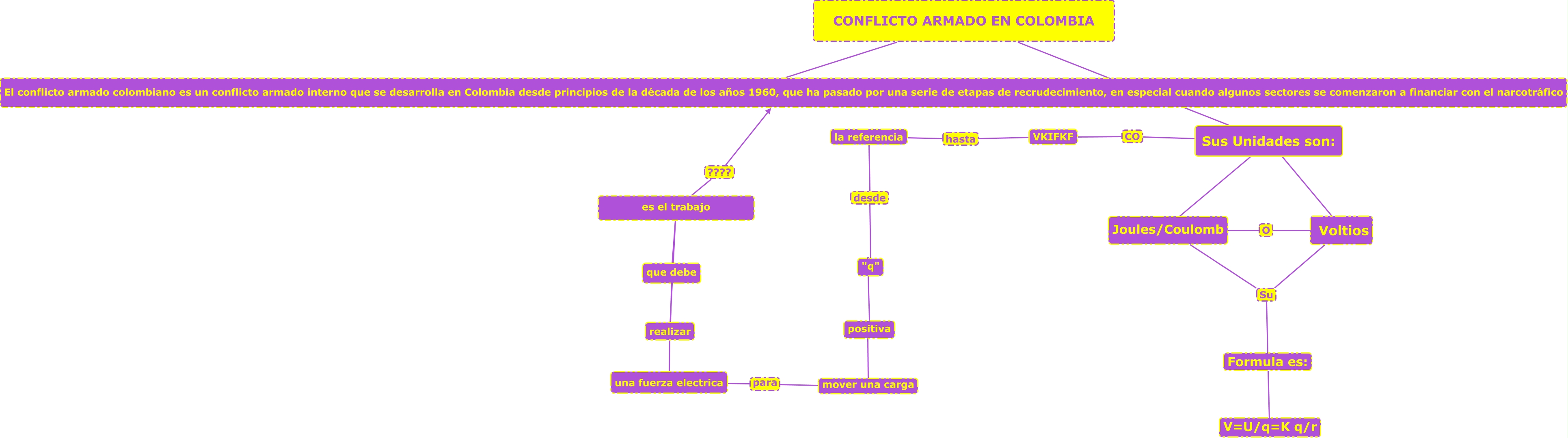 Este Cmap, tiene información relacionada con: TEXTOS LITERARIOS, es el trabajo ???? El conflicto armado colombiano es un conflicto armado interno que se desarrolla en Colombia desde principios de la década de los años 1960, que ha pasado por una serie de etapas de recrudecimiento, en especial cuando algunos sectores se comenzaron a financiar con el narcotráfico, una fuerza electrica para mover una carga, la referencia hasta VKIFKF, Voltios Su Formula es:, Formula es: ???? V=U/q=K q/r, Sus Unidades son: ???? Joules/Coulomb, es el trabajo ???? realizar, Joules/Coulomb Su Formula es:, "q" desde la referencia, es el trabajo ???? una fuerza electrica, Sus Unidades son: CO VKIFKF, Voltios O Joules/Coulomb, "q" positiva, Sus Unidades son: CONFLICTO ARMADO EN COLOMBIA El conflicto armado colombiano es un conflicto armado interno que se desarrolla en Colombia desde principios de la década de los años 1960, que ha pasado por una serie de etapas de recrudecimiento, en especial cuando algunos sectores se comenzaron a financiar con el narcotráfico, Sus Unidades son: ???? Voltios, positiva ???? mover una carga