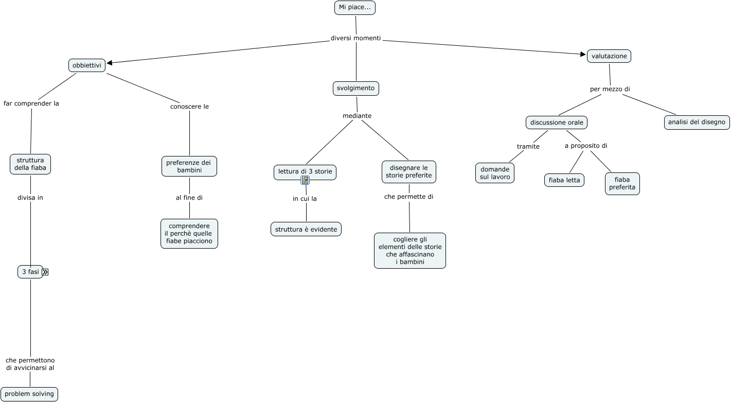 Questa Cmap, creata con IHMC CmapTools, contiene informazioni relative a: la fiaba 1.1, discussione orale a proposito di fiaba preferita, preferenze dei bambini al fine di comprendere il perchè quelle fiabe piacciono, obbiettivi far comprender la struttura della fiaba, inizio che presenta una situazione problematica, crisi si delinea la situazione problematica, struttura della fiaba divisa in soluzione, svolgimento mediante disegnare le storie preferite, struttura della fiaba divisa in inizio, Mi piace... diversi momenti obbiettivi, 3 fasi che permettono di avvicinarsi al problem solving, discussione orale a proposito di fiaba letta, valutazione per mezzo di analisi del disegno, Mi piace... diversi momenti valutazione, disegnare le storie preferite che permette di cogliere gli elementi delle storie che affascinano i bambini, soluzione si supera la situazione problematica, discussione orale tramite domande sul lavoro, struttura della fiaba divisa in crisi, Mi piace... diversi momenti svolgimento, obbiettivi conoscere le preferenze dei bambini, svolgimento mediante lettura di 3 storie