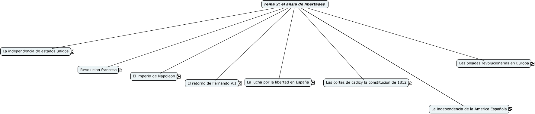 Este Cmap, tiene información relacionada con: Tema 2 el ansia de libertades, los colonos ingleses ,habian establecido en la zona trece colonias no obstante jorge III practico una politica abusiva,debido a los gastos generados por las guerras que mantuvo con francia, VUele la revolucion moderada.El directorio consituido por un grupo de 5 miembros cuyo gobierno hizo posible el extio militar frente las potencias del antiguo regimen a lo largo de 5 años, convocar a los estados generales,ante la imposibilidad de llegar a un acuerdo crearon el juego de la pelota:una asamblea nacional juraron no disolverla hasta haber redactado una constitucion ,habia comenzado la revolucion francesa se dividio en 3 etapas Republica y epoca del terror, unificar Europa bajo la autoridad de francia,pero se encontro con tres inconvenientes:Reino unido,España,Rusia esto influencio que su debil ejercito fuera derrotado, y napoleon deportado a la ilsa de elba,Pero volvio a francia y le volvieron a derrotar en la batalla de waterloo y fue desterrado a la isla de santa elena donde murio en 1821, tras la batalla de waterloo se celebro el congreso de viena,, el pueblo de aranjuez se levanto contra carlos IV por que habian permitido la entrada de las tropas francesas de napoleon,con el pretexto de invadir portugal napoleon introdujo a jose I como rey por que convoco a fernando VII y carlos IV con la escusa de mediar con ellos pero una vez alli les hizo renunciar a la corona de España, Revolucion de la burguesia moderna significo que luis xvI envio a sus tropas a Paris , para tomar la bastilla,carcel que significaba poder real, Tema 2: el ansia de libertades en 1810 los sublevados se reunieron para decidir el regimen que debia establecerse cuando llegara a españa fernando VII ,, Luis xvI convoco la asamble de notables con el fin de comunicar a la nobleza y al alto clero que tambien ellos deberian pagar impuestos por los gastos continuos con inglaterra, convocar a los estados generales,ante la imposibilidad de llegar a un acuerdo crearon el juego de la pelota:una asamblea nacional juraron no disolverla hasta haber redactado una constitucion ,habia comenzado la revolucion francesa se dividio en 3 etapas VUele la revolucion moderada.El directorio, Tema 2: el ansia de libertades la independencia de estados unidos los colonos ingleses ,habian establecido en la zona trece colonias, el inicio de la guerra en 1808 , madrid se levanto con un ejercito por los rumores de que Napoleon tenia secuestrada la familia real a raiz del suceso se crearon juntas locales y provinciales , la lucha se extendio en todo el territorio español el final de la guerra tubo lugar por que el general castaños derroto al general dupont en la batalla de bailen la victoria llevo a jose bonaparte a ausentarse de madrid. en 1812 se incia en portugal una ofensiva angloespañola dirigida por el general Wellington, Tema 2: el ansia de libertades para el año 1789 Luis xvI convoco la asamble de notables, el alzamiento que fue el Pronunciamiento del general Riego, apartir de ahi se inicio una nueva etapa , el trienio liberal, españa paso a estar regida por una monrarquia moderna, al final de 1823 el poderoso ejerctio de la santa alianza:entro en la peninsula y restauro la monarquia absolutista ,el general Riego fue ejecutado., un grupo de 5 miembros cuyo gobierno hizo posible el extio militar frente las potencias del antiguo regimen a lo largo de 5 años sin embargo en medio del caos civil un general ambicioso ,Napoleon Bonaparte dio un golpe de estado y acabo con el directorio .en 1799, el ansia de libertad adoprto dos tipos de movimiento revolucionario que fue El nacionalismo que intentaba independizar un pais de otro,que tenia dos ideas principales, la igualdad y la libertad, comunicar a la nobleza y al alto clero que tambien ellos deberian pagar impuestos por los gastos continuos con inglaterra ya que los notables se negaron dio lugar a convocar a los estados generales,ante la imposibilidad de llegar a un acuerdo crearon el juego de la pelota:una asamblea nacional juraron no disolverla hasta haber redactado una constitucion ,habia comenzado la revolucion francesa, Tema 2: el ansia de libertades durante el siglo XIX el ansia de libertad adoprto dos tipos de movimiento revolucionario, Tema 2: el ansia de libertades se caracterizo por el alzamiento que fue el Pronunciamiento del general Riego, apartir de ahi se inicio una nueva etapa , el trienio liberal, españa paso a estar regida por una monrarquia moderna,, Republica y epoca del terror en 1792 austria y prusia declararon la guerra a francia con la intencion de volver al antiguo regimen.Se creo el poder mas radical que eran los jacobinos la asamblea paso a ser una convencion dirigida por roberpierre, Tema 2: el ansia de libertades para el año 1804 Napoleon fue emperador,cerro la mayoria de los periodicos, creo escuelas y liceos,saneo hacienda y creo el banco de francia y la mondea que permanecio circulano hasta 2002 el franco