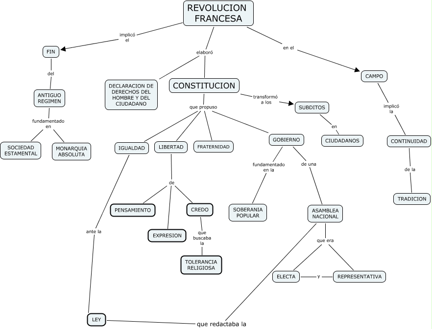 Este Cmap, tiene información relacionada con: revolucion francesa3, CONSTITUCION que propuso IGUALDAD, CONSTITUCION que propuso GOBIERNO, CONSTITUCION transformó a los SUBDITOS, LIBERTAD de PENSAMIENTO, CONTINUIDAD de la TRADICION, IGUALDAD ante la LEY, ELECTA y REPRESENTATIVA, LIBERTAD de CREDO, CONSTITUCION que propuso LIBERTAD, GOBIERNO fundamentado en la SOBERANIA POPULAR, LIBERTAD de EXPRESION, CREDO que buscaba la TOLERANCIA RELIGIOSA, ANTIGUO REGIMEN fundamentado en SOCIEDAD ESTAMENTAL, ASAMBLEA NACIONAL que era ELECTA, ASAMBLEA NACIONAL que era REPRESENTATIVA, CONSTITUCION que propuso FRATERNIDAD, ASAMBLEA NACIONAL que redactaba la LEY, CAMPO implicó la CONTINUIDAD, ANTIGUO REGIMEN fundamentado en MONARQUIA ABSOLUTA, SUBDITOS en CIUDADANOS