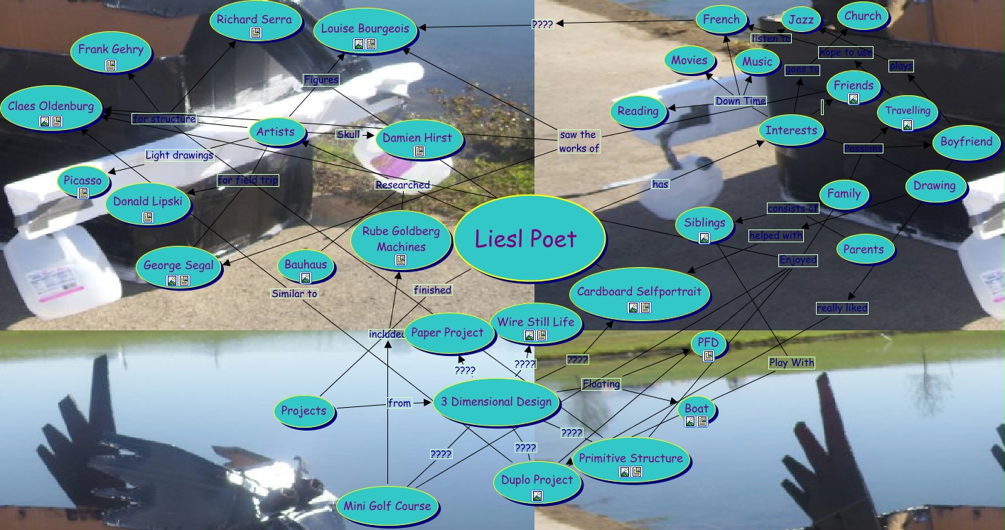 This Concept Map, created with IHMC CmapTools, has information related to: Liesl Poet, 3 Dimensional Design ???? Duplo Project, Primitive Structure for structure Richard Serra, Interests Passions Drawing, Friends saw the works of Louise Bourgeois, Mini Golf Course included Rube Goldberg Machines, Family Enjoyed Mini Golf Course, Artists for field trip George Segal, Liesl Poet has Interests, Music listen to Jazz, Interests Passions Travelling, Artists Figures Louise Bourgeois, Interests Friends, Artists Light drawings Picasso, Family Enjoyed Claes Oldenburg, 3 Dimensional Design ???? Mini Golf Course, Artists for structure Richard Serra, Family consists of Siblings, Artists for structure Claes Oldenburg, Liesl Poet Researched Rube Goldberg Machines, Liesl Poet Researched Artists