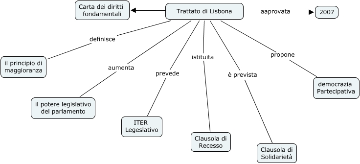Questa Cmap, creata con IHMC CmapTools, contiene informazioni relative a: trattato di lisbona_selma, Trattato di Lisbona è prevista Clausola di Solidarietà, Trattato di Lisbona ???? Carta dei diritti fondamentali, Trattato di Lisbona prevede ITER Legeslativo, Trattato di Lisbona aumenta il potere legislativo del parlamento, Trattato di Lisbona definisce il principio di maggioranza, Trattato di Lisbona propone democrazia Partecipativa, Trattato di Lisbona aaprovata 2007, Trattato di Lisbona istituita Clausola di Recesso
