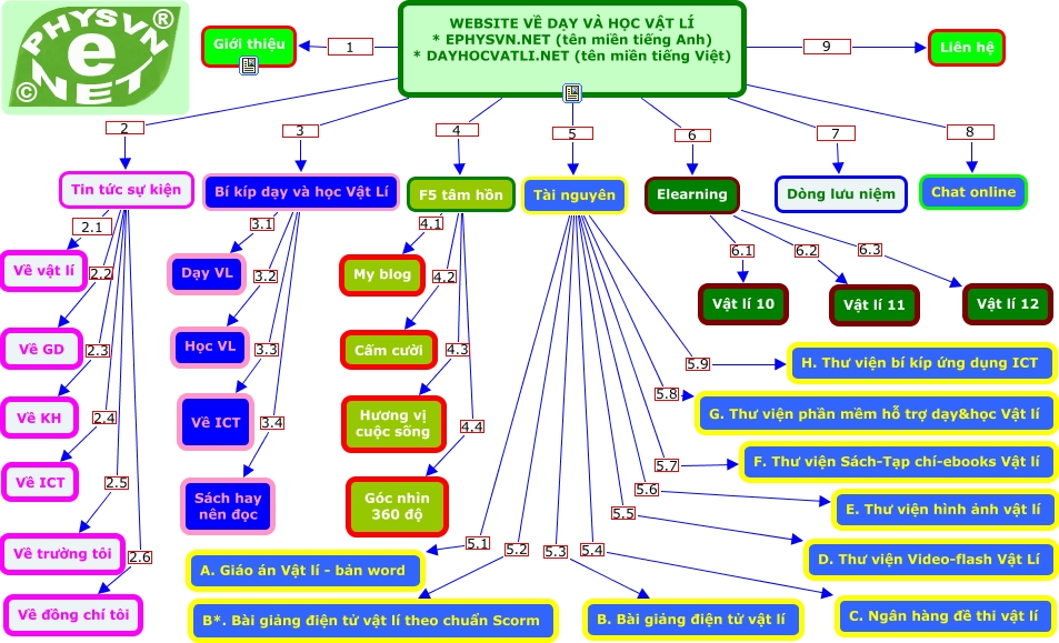 This Concept Map, created with IHMC CmapTools, has information related to: sudung, Tài nguyên 5.9 H. Thư viện bí kíp ứng dụng ICT, Tin tức sự kiện 2.5 Về trường tôi, Elearning 6.1 Vật lí 10, Bí kíp dạy và học Vật Lí 3.4 Sách hay nên đọc, Tài nguyên 5.5 D. Thư viện Video-flash Vật Lí, Tin tức sự kiện 2.2 Về GD, F5 tâm hồn 4.3 Hương vị cuộc sống, Tin tức sự kiện 2.1 Về vật lí, WEBSITE VỀ DẠY VÀ HỌC VẬT LÍ * EPHYSVN.NET (tên miền tiếng Anh) * DAYHOCVATLI.NET (tên miền tiếng Việt) 7 Dòng lưu niệm, Tài nguyên 5.4 C. Ngân hàng đề thi vật lí, WEBSITE VỀ DẠY VÀ HỌC VẬT LÍ * EPHYSVN.NET (tên miền tiếng Anh) * DAYHOCVATLI.NET (tên miền tiếng Việt) 8 Chat online, Tài nguyên 5.6 E. Thư viện hình ảnh vật lí, F5 tâm hồn 4.1 My blog, WEBSITE VỀ DẠY VÀ HỌC VẬT LÍ * EPHYSVN.NET (tên miền tiếng Anh) * DAYHOCVATLI.NET (tên miền tiếng Việt) 9 Liên hệ, F5 tâm hồn 4.2 Cấm cười, Bí kíp dạy và học Vật Lí 3.2 Học VL, WEBSITE VỀ DẠY VÀ HỌC VẬT LÍ * EPHYSVN.NET (tên miền tiếng Anh) * DAYHOCVATLI.NET (tên miền tiếng Việt) 2 Tin tức sự kiện, Elearning 6.2 Vật lí 11, Bí kíp dạy và học Vật Lí 3.1 Dạy VL, Tin tức sự kiện 2.3 Về KH