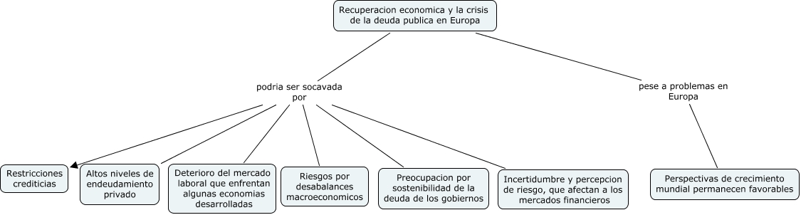 Este Cmap, tiene información relacionada con: Recuperacion economica y crisis de deuda prublica en Europa, Recuperacion economica y la crisis de la deuda publica en Europa podria ser socavada por Riesgos por desabalances macroeconomicos, Recuperacion economica y la crisis de la deuda publica en Europa podria ser socavada por Deterioro del mercado laboral que enfrentan algunas economias desarrolladas, Recuperacion economica y la crisis de la deuda publica en Europa podria ser socavada por Incertidumbre y percepcion de riesgo, que afectan a los mercados financieros, Recuperacion economica y la crisis de la deuda publica en Europa pese a problemas en Europa Perspectivas de crecimiento mundial permanecen favorables, Recuperacion economica y la crisis de la deuda publica en Europa podria ser socavada por Altos niveles de endeudamiento privado, Recuperacion economica y la crisis de la deuda publica en Europa podria ser socavada por Restricciones crediticias, Recuperacion economica y la crisis de la deuda publica en Europa podria ser socavada por Preocupacion por sostenibilidad de la deuda de los gobiernos