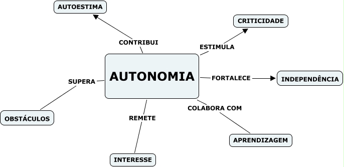 Esse mapa conceitual, produzido no IHMC CmapTools, tem a informação relacionada a: AUTONOMIA, AUTONOMIA SUPERA OBSTÁCULOS, AUTONOMIA FORTALECE INDEPENDÊNCIA, AUTONOMIA REMETE INTERESSE, AUTONOMIA ESTIMULA CRITICIDADE, AUTONOMIA CONTRIBUI AUTOESTIMA, AUTONOMIA COLABORA COM APRENDIZAGEM