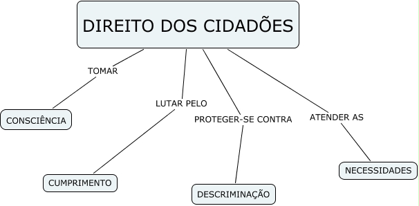 Esse mapa conceitual, produzido no IHMC CmapTools, tem a informação relacionada a: DIREITO DOS CIDADÕES, DIREITO DOS CIDADÕES ATENDER AS NECESSIDADES, DIREITO DOS CIDADÕES TOMAR CONSCIÊNCIA, DIREITO DOS CIDADÕES PROTEGER-SE CONTRA DESCRIMINAÇÃO, DIREITO DOS CIDADÕES LUTAR PELO CUMPRIMENTO