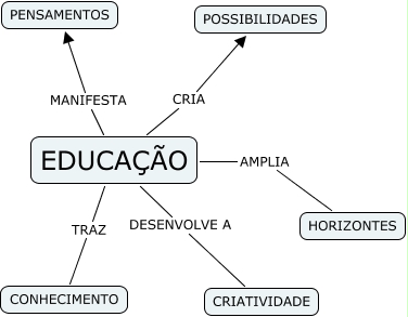 Esse mapa conceitual, produzido no IHMC CmapTools, tem a informação relacionada a: EDUCAÇÃO, EDUCAÇÃO TRAZ CONHECIMENTO, EDUCAÇÃO MANIFESTA PENSAMENTOS, EDUCAÇÃO AMPLIA HORIZONTES, EDUCAÇÃO CRIA POSSIBILIDADES, EDUCAÇÃO DESENVOLVE A CRIATIVIDADE
