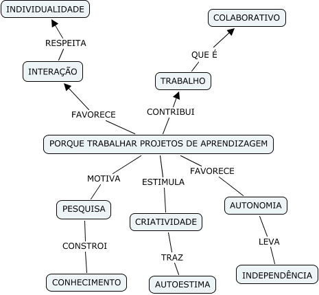 Esse mapa conceitual, produzido no IHMC CmapTools, tem a informação relacionada a: Porque trabalhar PA, PORQUE TRABALHAR PROJETOS DE APRENDIZAGEM MOTIVA PESQUISA, CRIATIVIDADE TRAZ AUTOESTIMA, PORQUE TRABALHAR PROJETOS DE APRENDIZAGEM FAVORECE AUTONOMIA, INTERAÇÃO RESPEITA INDIVIDUALIDADE, PESQUISA CONSTROI CONHECIMENTO, PORQUE TRABALHAR PROJETOS DE APRENDIZAGEM ESTIMULA CRIATIVIDADE, PORQUE TRABALHAR PROJETOS DE APRENDIZAGEM FAVORECE INTERAÇÃO, TRABALHO QUE É COLABORATIVO, AUTONOMIA LEVA INDEPENDÊNCIA, PORQUE TRABALHAR PROJETOS DE APRENDIZAGEM CONTRIBUI TRABALHO