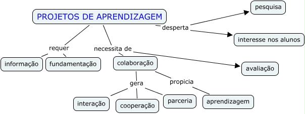 Esse mapa conceitual, produzido no IHMC CmapTools, tem a informação relacionada a: PROJETO DE APRENDIZAGEM, colaboração gera interação, colaboração gera cooperação, PROJETOS DE APRENDIZAGEM requer informação, colaboração gera parceria, PROJETOS DE APRENDIZAGEM necessita de avaliação, PROJETOS DE APRENDIZAGEM requer fundamentação, colaboração propicia aprendizagem, PROJETOS DE APRENDIZAGEM necessita de colaboração, PROJETOS DE APRENDIZAGEM desperta interesse nos alunos, PROJETOS DE APRENDIZAGEM desperta pesquisa