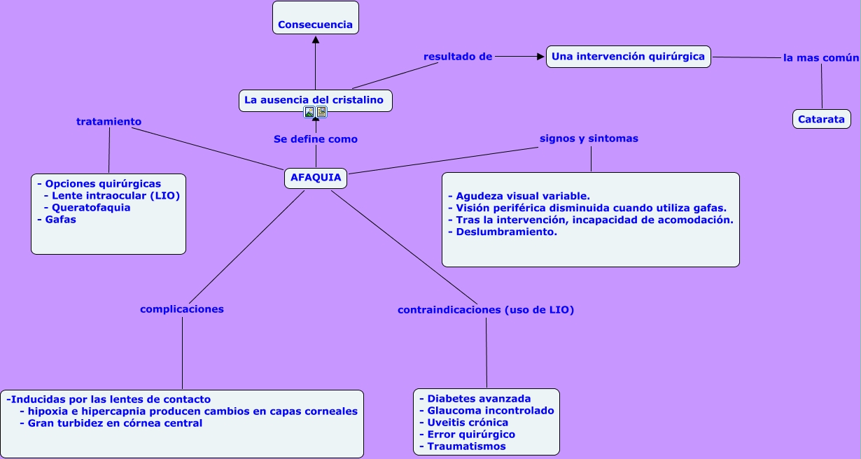 Este Cmap, tiene información relacionada con: AFAQUIA- Durán Camacho Norma Leticia 3TM4, AFAQUIA complicaciones -Inducidas por las lentes de contacto - hipoxia e hipercapnia producen cambios en capas corneales - Gran turbidez en córnea central, La ausencia del cristalino resultado de Una intervención quirúrgica, Una intervención quirúrgica la mas común Catarata, La ausencia del cristalino ???? Consecuencia, AFAQUIA tratamiento - Opciones quirúrgicas - Lente intraocular (LIO) - Queratofaquia - Gafas, AFAQUIA contraindicaciones (uso de LIO) - Diabetes avanzada - Glaucoma incontrolado - Uveitis crónica - Error quirúrgico - Traumatismos, AFAQUIA signos y sintomas - Agudeza visual variable. - Visión periférica disminuida cuando utiliza gafas. - Tras la intervención, incapacidad de acomodación. - Deslumbramiento., AFAQUIA Se define como La ausencia del cristalino