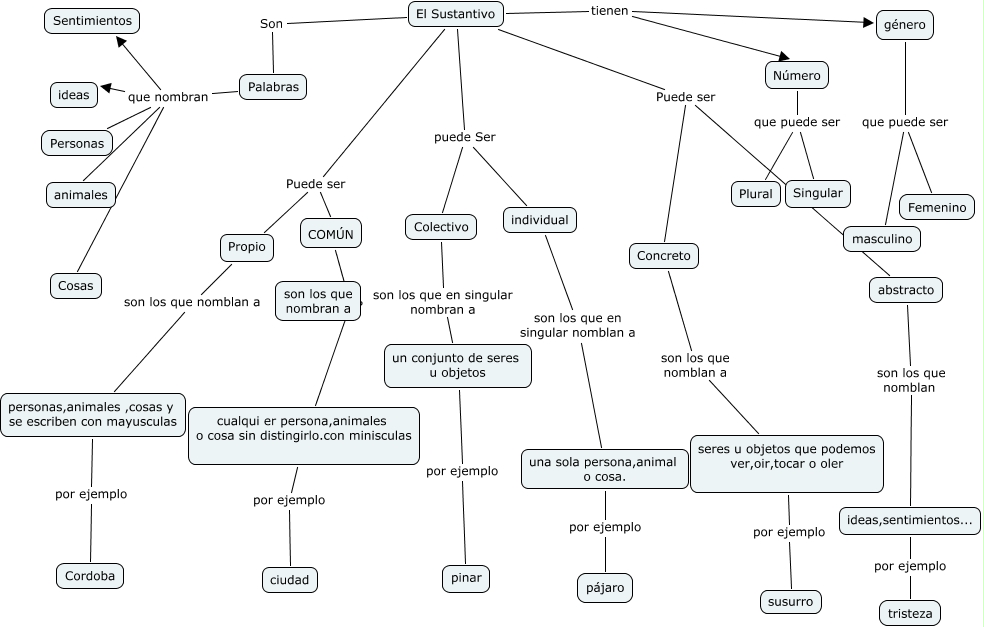 Este Cmap, tiene información relacionada con: El Sustantivo l.oscar, Palabras que nombran Personas, género que puede ser Femenino, El Sustantivo Son Palabras, COMÚN ???? cualqui er persona,animales o cosa sin distingirlo.con minisculas, El Sustantivo Puede ser abstracto, El Sustantivo Puede ser COMÚN, seres u objetos que podemos ver,oir,tocar o oler por ejemplo susurro, un conjunto de seres u objetos por ejemplo pinar, El Sustantivo tienen Número, una sola persona,animal o cosa. por ejemplo pájaro, cualqui er persona,animales o cosa sin distingirlo.con minisculas por ejemplo ciudad, El Sustantivo puede Ser individual, Palabras que nombran animales, El Sustantivo puede Ser Colectivo, El Sustantivo Puede ser Propio, ideas,sentimientos... por ejemplo tristeza, abstracto son los que nomblan ideas,sentimientos..., individual son los que en singular nomblan a una sola persona,animal o cosa., Concreto son los que nomblan a seres u objetos que podemos ver,oir,tocar o oler, Número que puede ser Singular