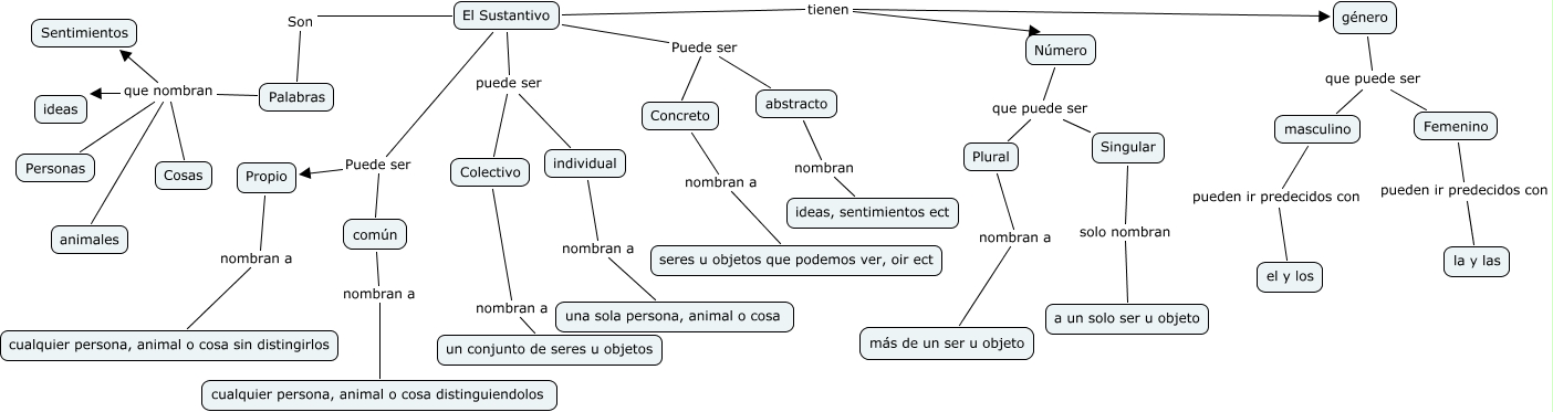 Este Cmap, tiene información relacionada con: sustantivo provisional Laura, Palabras que nombran ideas, El Sustantivo puede ser individual, Número que puede ser Plural, Palabras que nombran animales, Propio nombran a cualquier persona, animal o cosa sin distingirlos, Femenino pueden ir predecidos con la y las, Palabras que nombran Personas, Palabras que nombran Cosas, Singular solo nombran a un solo ser u objeto, género que puede ser masculino, El Sustantivo Puede ser abstracto, masculino pueden ir predecidos con el y los, El Sustantivo tienen Número, Número que puede ser Singular, género que puede ser Femenino, El Sustantivo Puede ser común, Concreto nombran a seres u objetos que podemos ver, oir ect, El Sustantivo tienen género, abstracto nombran ideas, sentimientos ect, El Sustantivo Son Palabras