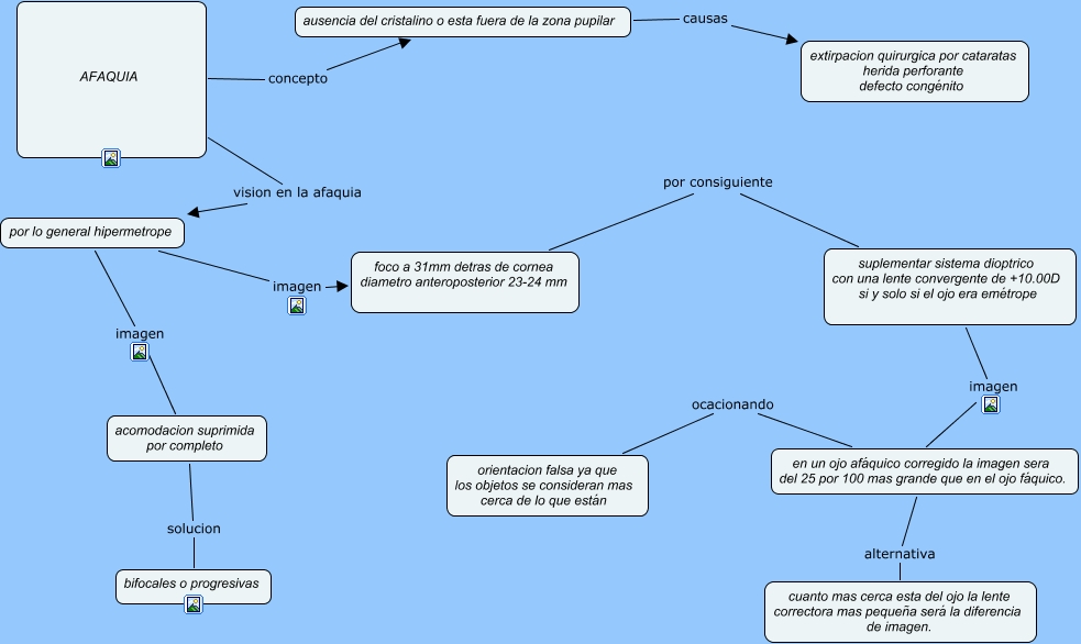 Este Cmap, tiene información relacionada con: afaquiaRODRIGUEZLOPEZANAKAREN3tm4, AFAQUIA vision en la afaquia por lo general hipermetrope, por lo general hipermetrope imagen acomodacion suprimida por completo, foco a 31mm detras de cornea diametro anteroposterior 23-24 mm por consiguiente suplementar sistema dioptrico con una lente convergente de +10.00D si y solo si el ojo era emétrope, por lo general hipermetrope imagen foco a 31mm detras de cornea diametro anteroposterior 23-24 mm, en un ojo afáquico corregido la imagen sera del 25 por 100 mas grande que en el ojo fáquico. ocacionando orientacion falsa ya que los objetos se consideran mas cerca de lo que están, AFAQUIA concepto ausencia del cristalino o esta fuera de la zona pupilar, ausencia del cristalino o esta fuera de la zona pupilar causas extirpacion quirurgica por cataratas herida perforante defecto congénito, suplementar sistema dioptrico con una lente convergente de +10.00D si y solo si el ojo era emétrope imagen en un ojo afáquico corregido la imagen sera del 25 por 100 mas grande que en el ojo fáquico., acomodacion suprimida por completo solucion bifocales o progresivas, en un ojo afáquico corregido la imagen sera del 25 por 100 mas grande que en el ojo fáquico. alternativa cuanto mas cerca esta del ojo la lente correctora mas pequeña será la diferencia de imagen.