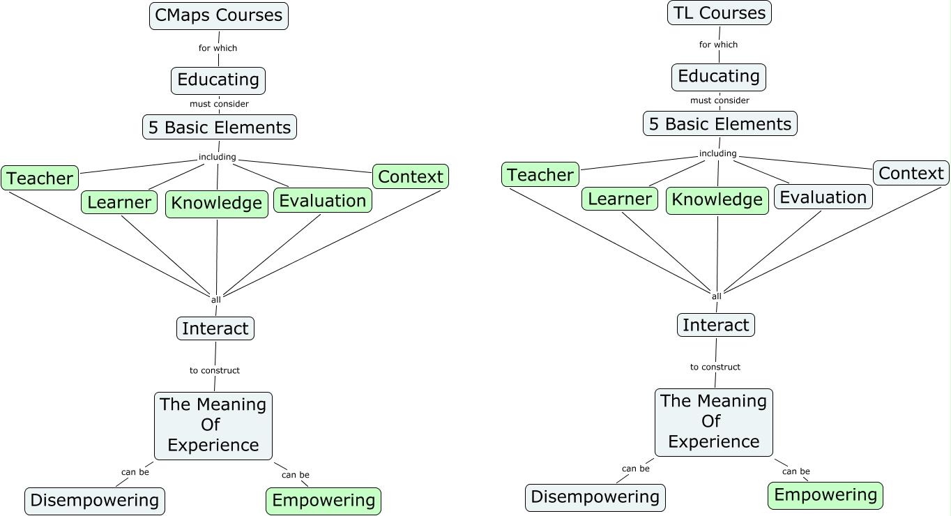 This Concept Map, created with IHMC CmapTools, has information related to: An Doyle CMaps vs TL Survey, The Meaning Of Experience can be Disempowering, Knowledge all Evaluation, Knowledge all Interact, 5 Basic Elements including Evaluation, Educating must consider 5 Basic Elements, Interact to construct The Meaning Of Experience, The Meaning Of Experience can be Empowering, CMaps Courses for which Educating, Interact to construct The Meaning Of Experience, Knowledge all Learner, 5 Basic Elements including Context, Knowledge all Teacher, 5 Basic Elements including Context, Knowledge all Interact, 5 Basic Elements including Learner, Knowledge all Learner, Knowledge all Context, TL Courses for which Educating, 5 Basic Elements including Learner, 5 Basic Elements including Evaluation