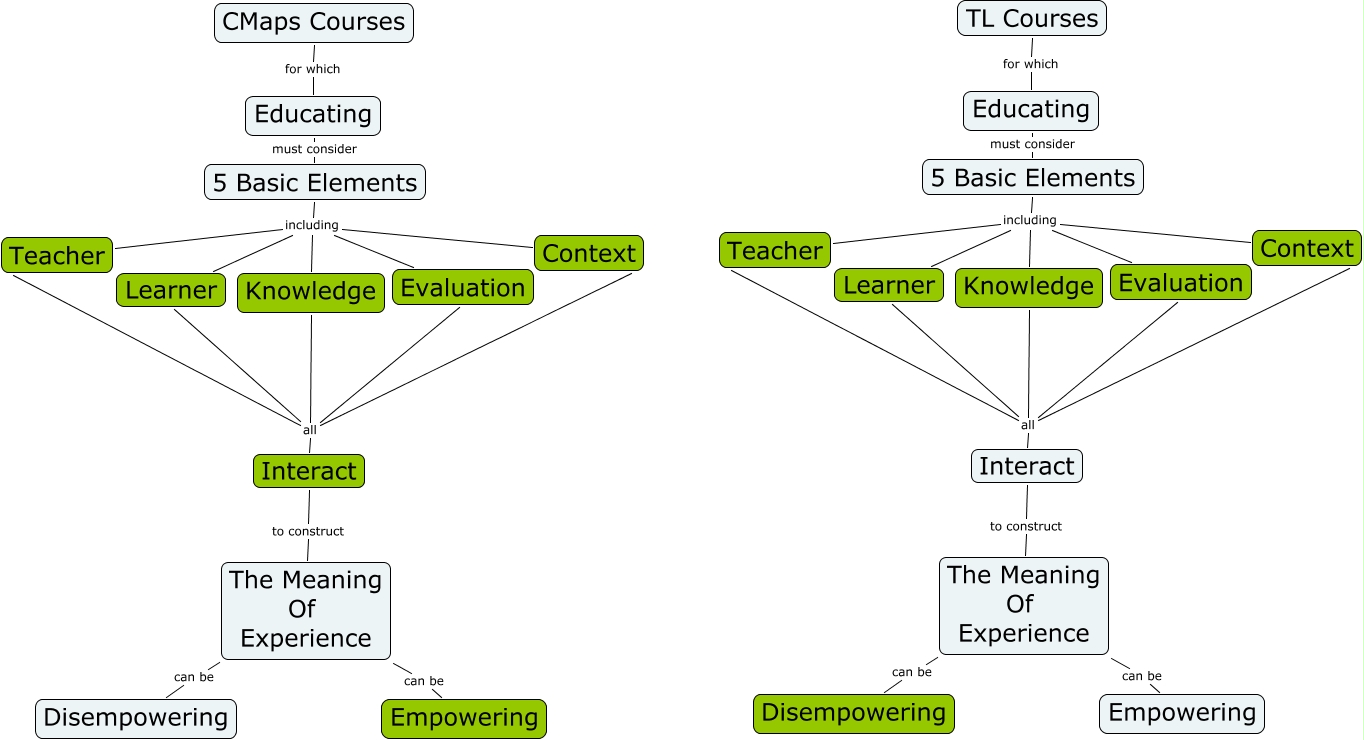 This Concept Map, created with IHMC CmapTools, has information related to: SE CMaps vs TL Survey, The Meaning Of Experience can be Disempowering, Knowledge all Interact, Knowledge all Evaluation, 5 Basic Elements including Evaluation, Interact to construct The Meaning Of Experience, Educating must consider 5 Basic Elements, The Meaning Of Experience can be Empowering, CMaps Courses for which Educating, Knowledge all Learner, Interact to construct The Meaning Of Experience, 5 Basic Elements including Context, Knowledge all Teacher, 5 Basic Elements including Learner, Knowledge all Interact, 5 Basic Elements including Context, Knowledge all Context, Knowledge all Learner, Educating must consider 5 Basic Elements, 5 Basic Elements including Evaluation, 5 Basic Elements including Learner