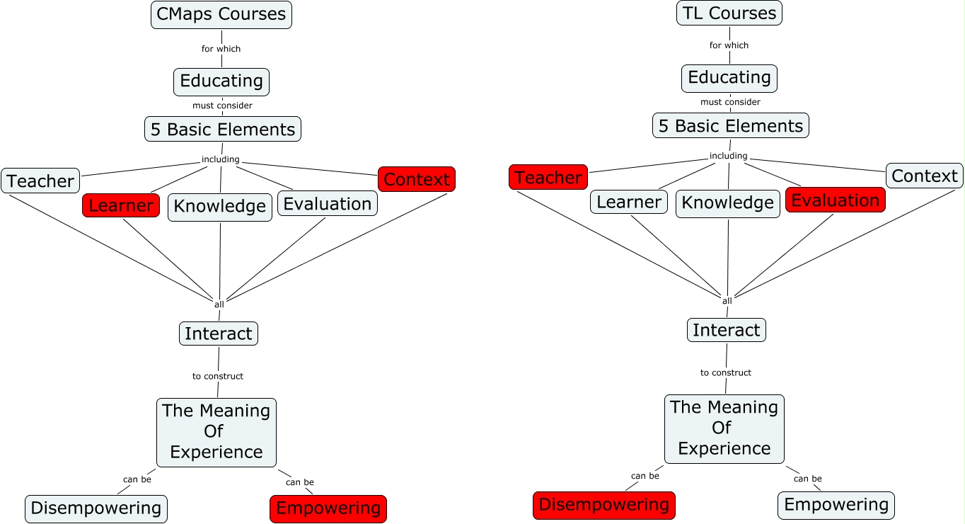 This Concept Map, created with IHMC CmapTools, has information related to: Ka Hunt CMaps vs TL Survey, The Meaning Of Experience can be Disempowering, Knowledge all Interact, Knowledge all Evaluation, 5 Basic Elements including Evaluation, Interact to construct The Meaning Of Experience, Educating must consider 5 Basic Elements, The Meaning Of Experience can be Empowering, CMaps Courses for which Educating, Knowledge all Learner, Interact to construct The Meaning Of Experience, 5 Basic Elements including Context, Knowledge all Teacher, 5 Basic Elements including Learner, Knowledge all Interact, 5 Basic Elements including Context, Knowledge all Context, Knowledge all Learner, Educating must consider 5 Basic Elements, 5 Basic Elements including Evaluation, 5 Basic Elements including Learner
