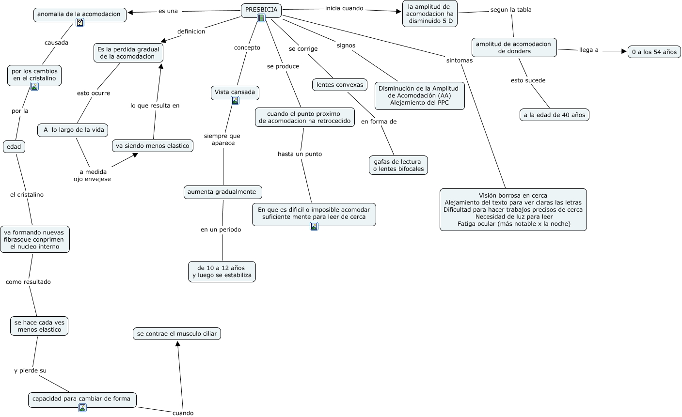 Este Cmap, tiene información relacionada con: presbicia13tm1 Victor Hugo Gonzalez Frias, lentes convexas en forma de gafas de lectura o lentes bifocales, por los cambios en el cristalino por la edad, se hace cada ves menos elastico y pierde su capacidad para cambiar de forma, Es la perdida gradual de la acomodacion esto ocurre A lo largo de la vida, PRESBICIA es una anomalia de la acomodacion, A lo largo de la vida a medida ojo envejese va siendo menos elastico, capacidad para cambiar de forma cuando se contrae el musculo ciliar, PRESBICIA definicion Es la perdida gradual de la acomodacion, va formando nuevas fibrasque conprimen el nucleo interno como resultado se hace cada ves menos elastico, anomalia de la acomodacion causada por los cambios en el cristalino, PRESBICIA sintomas Visión borrosa en cerca Alejamiento del texto para ver claras las letras Dificultad para hacer trabajos precisos de cerca Necesidad de luz para leer Fatiga ocular (más notable x la noche), amplitud de acomodacion de donders esto sucede a la edad de 40 años, amplitud de acomodacion de donders llega a 0 a los 54 años, cuando el punto proximo de acomodacion ha retrocedido hasta un punto En que es dificil o imposible acomodar suficiente mente para leer de cerca, Vista cansada siempre que aparece aumenta gradualmente, aumenta gradualmente en un periodo de 10 a 12 años y luego se estabiliza, la amplitud de acomodacion ha disminuido 5 D segun la tabla amplitud de acomodacion de donders, PRESBICIA se corrige lentes convexas, edad el cristalino va formando nuevas fibrasque conprimen el nucleo interno, va siendo menos elastico lo que resulta en Es la perdida gradual de la acomodacion