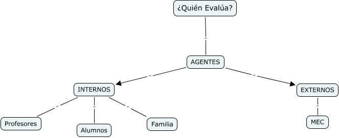 Este Cmap, tiene información relacionada con: F) Quién evalúa, INTERNOS . Familia, EXTERNOS . MEC, INTERNOS . Profesores, AGENTES . INTERNOS, INTERNOS . Alumnos, AGENTES . EXTERNOS, ¿Quién Evalúa? . AGENTES
