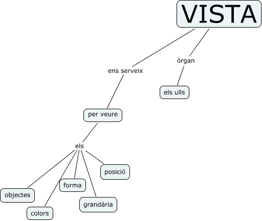 Este Cmap, tiene información relacionada con: vista, per veure els grandària, VISTA ens serveix per veure, per veure els objectes, per veure els forma, per veure els posició, VISTA òrgan els ulls, per veure els colors