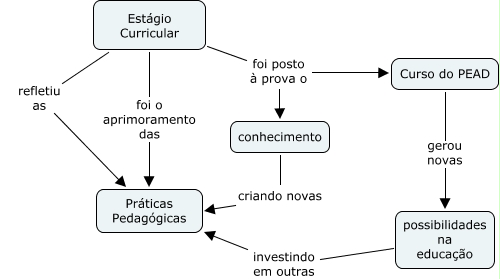 Esse mapa conceitual, produzido no IHMC CmapTools, tem a informação relacionada a: Estágio Curricular, Estágio Curricular foi o aprimoramento das Práticas Pedagógicas, Curso do PEAD gerou novas possibilidades na educação, Estágio Curricular refletiu as Práticas Pedagógicas, conhecimento criando novas Práticas Pedagógicas, Estágio Curricular foi posto à prova o conhecimento, Estágio Curricular foi posto à prova o Curso do PEAD, possibilidades na educação investindo em outras Práticas Pedagógicas