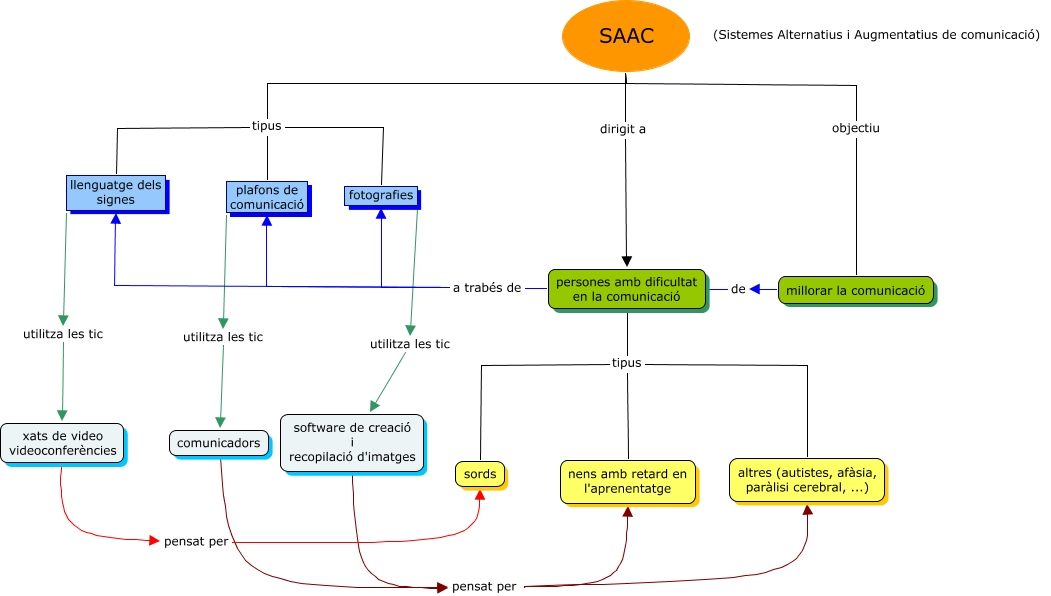 Este Cmap, tiene información relacionada con: SAAC, persones amb dificultat en la comunicació a trabés de plafons de comunicació, llenguatge dels signes utilitza les tic xats de video videoconferències, altres (autistes, afàsia, paràlisi cerebral, ...) tipus persones amb dificultat en la comunicació, fotografies utilitza les tic software de creació i recopilació d'imatges, altres (autistes, afàsia, paràlisi cerebral, ...) tipus nens amb retard en l'aprenentatge, plafons de comunicació tipus SAAC, millorar la comunicació objectiu SAAC, plafons de comunicació tipus fotografies, software de creació i recopilació d'imatges pensat per altres (autistes, afàsia, paràlisi cerebral, ...), persones amb dificultat en la comunicació a trabés de llenguatge dels signes, altres (autistes, afàsia, paràlisi cerebral, ...) tipus sords, software de creació i recopilació d'imatges pensat per nens amb retard en l'aprenentatge, comunicadors pensat per altres (autistes, afàsia, paràlisi cerebral, ...), plafons de comunicació tipus llenguatge dels signes, plafons de comunicació utilitza les tic comunicadors, comunicadors pensat per nens amb retard en l'aprenentatge, xats de video videoconferències pensat per sords, persones amb dificultat en la comunicació a trabés de fotografies