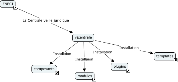 Cette carte de concepts créée avec IHMC CmapTools traite de: vjcentrale, FNECI La Centrale veille juridique vjcentrale, vjcentrale Installation plugins, vjcentrale Installation templates, vjcentrale Installaion modules, vjcentrale Installaion composants