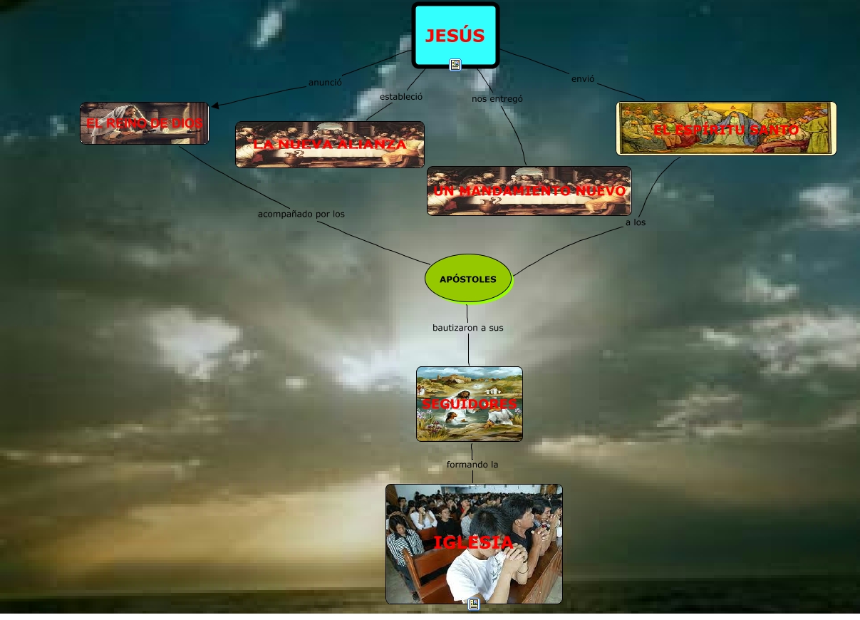 Este Cmap, tiene información relacionada con: Formación de laIglesia 2, JESÚS nos entregó UN MANDAMIENTO NUEVO, EL REINO DE DIOS acompañado por los APÓSTOLES, EL ESPÍRITU SANTO a los APÓSTOLES, JESÚS anunció EL REINO DE DIOS, APÓSTOLES bautizaron a sus SEGUIDORES, SEGUIDORES formando la IGLESIA, JESÚS estableció LA NUEVA ALIANZA, JESÚS envió EL ESPÍRITU SANTO