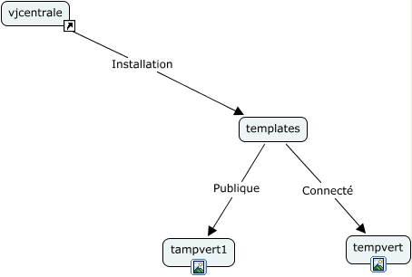 Cette carte de concepts créée avec IHMC CmapTools traite de: templates, vjcentrale Installation templates, templates Publique tampvert1, templates Connecté tempvert