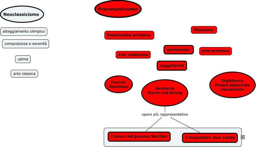 Questa Cmap, creata con IHMC CmapTools, contiene informazioni relative a: Neoclassicismo e preromanticismo, Germania Sturm und Drung opere più rappresentative I dolori del giovane Werther, Germania Sturm und Drung opere più rappresentative I masnadieri, Don Carlos