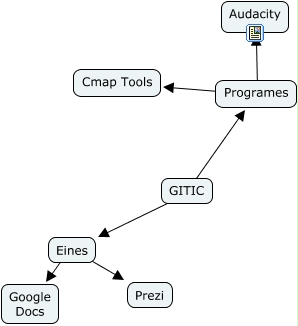 Aquest mapa conceptual conté informació relacionada amb: prova ebllaços, GITIC ???? Eines, Eines ???? Google Docs, Programes ???? Audacity, Programes ???? Cmap Tools, Eines ???? Prezi, GITIC ???? Programes