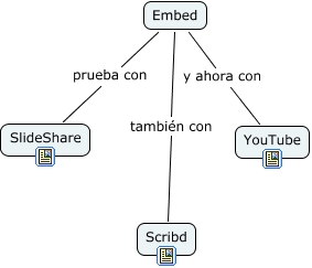 Aquest mapa conceptual conté informació relacionada amb: Embed, Embed prueba con SlideShare, Embed también con Scribd, Embed y ahora con YouTube