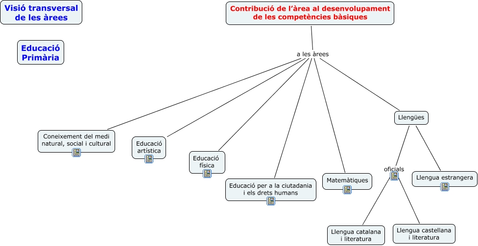 Aquest mapa conceptual conté informació relacionada amb: Àrees i competències, Contribució de l’àrea al desenvolupament de les competències bàsiques a les àrees Matemàtiques, Contribució de l’àrea al desenvolupament de les competències bàsiques a les àrees Educació artística, Contribució de l’àrea al desenvolupament de les competències bàsiques a les àrees Llengües, Contribució de l’àrea al desenvolupament de les competències bàsiques a les àrees Educació per a la ciutadania i els drets humans, Contribució de l’àrea al desenvolupament de les competències bàsiques a les àrees Coneixement del medi natural, social i cultural, Contribució de l’àrea al desenvolupament de les competències bàsiques a les àrees Educació física, Llengües oficials Llengua catalana i literatura, Llengües oficials Llengua castellana i literatura, Llengües Llengua estrangera