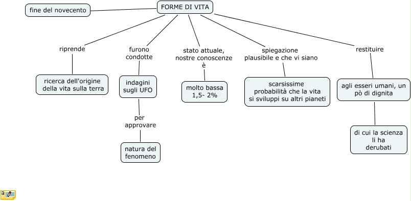 Questa Cmap, creata con IHMC CmapTools, contiene informazioni relative a: Forme di vita, FORME DI VITA ???? fine del novecento, FORME DI VITA restituire agli esseri umani, un pò di dignita, FORME DI VITA spiegazione plausibile e che vi siano scarsissime probabilità che la vita si sviluppi su altri pianeti, FORME DI VITA stato attuale, nostre conoscenze è molto bassa 1,5- 2%, indagini sugli UFO per approvare natura del fenomeno, FORME DI VITA riprende ricerca dell'origine della vita sulla terra, FORME DI VITA furono condotte indagini sugli UFO, agli esseri umani, un pò di dignita ???? di cui la scienza li ha derubati