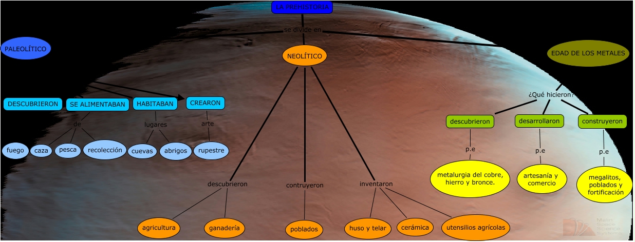 Este Cmap, tiene información relacionada con: la prehistoria, LA PREHISTORIA se divide en EDAD DE LOS METALES, desarrollaron p.e artesanía y comercio, NEOLÍTICO inventaron cerámica, EDAD DE LOS METALES ¿Qué hicieron? construyeron, EDAD DE LOS METALES ¿Qué hicieron? descubrieron, NEOLÍTICO descubrieron agricultura, CREARON arte rupestre, descubrieron p.e metalurgia del cobre, hierro y bronce., PALEOLÍTICO ¿Qué hacían? CREARON, NEOLÍTICO descubrieron ganadería, SE ALIMENTABAN de pesca, NEOLÍTICO inventaron utensilios agrícolas, DESCUBRIERON el fuego, HABITABAN lugares abrigos, LA PREHISTORIA se divide en NEOLÍTICO, LA PREHISTORIA se divide en PALEOLÍTICO, PALEOLÍTICO ¿Qué hacían? HABITABAN, EDAD DE LOS METALES ¿Qué hicieron? desarrollaron, HABITABAN lugares cuevas, NEOLÍTICO contruyeron poblados