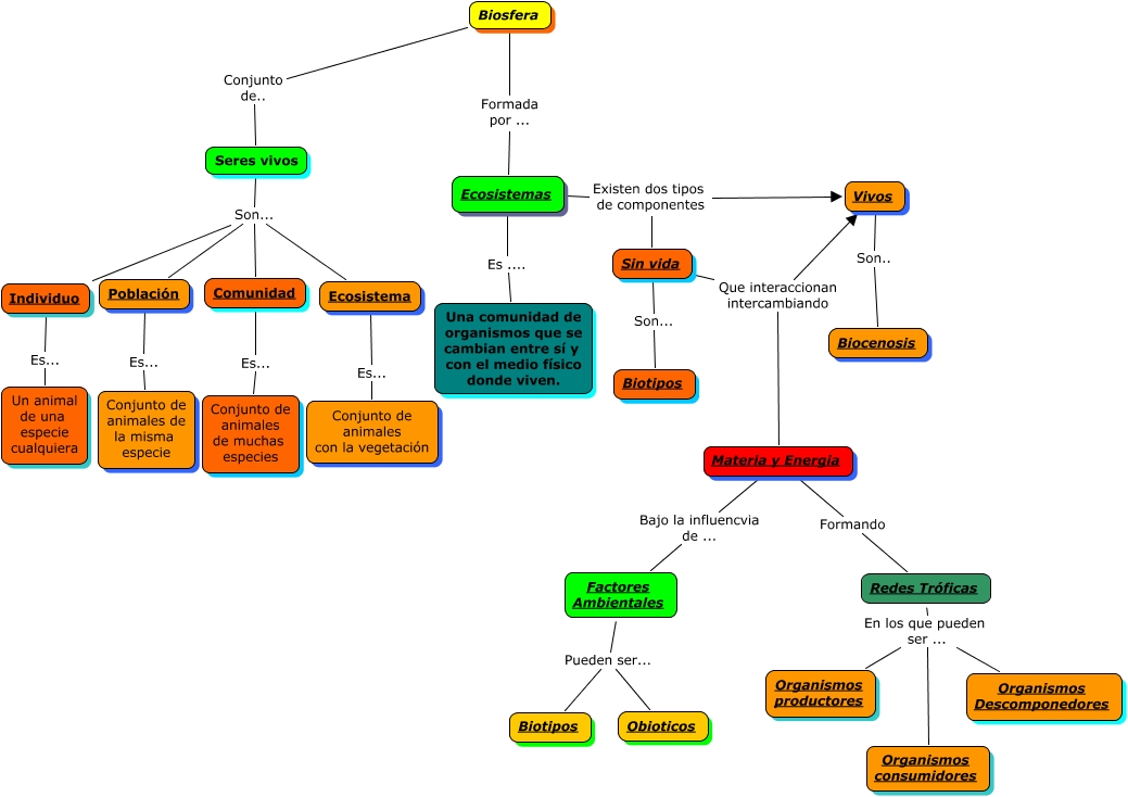 Este Cmap, tiene información relacionada con: Ecosistema juanjo4º, Redes Tróficas En los que pueden ser ... Organismos consumidores, Factores Ambientales Pueden ser... Obioticos, Biosfera Formada por ... Ecosistemas, Población Es... Conjunto de animales de la misma especie, Factores Ambientales Pueden ser... Biotipos, Seres vivos Son... Población, Ecosistemas Existen dos tipos de componentes Sin vida, Biosfera Conjunto de.. Seres vivos, Materia y Energia Formando Redes Tróficas, Individuo Es... Un animal de una especie cualquiera, Seres vivos Son... Ecosistema, Redes Tróficas En los que pueden ser ... Organismos Descomponedores, Comunidad Es... Conjunto de animales de muchas especies, Vivos Son.. Biocenosis, Sin vida Que interaccionan intercambiando Vivos, Sin vida Son... Biotipos, Seres vivos Son... Individuo, Ecosistemas Es .... Una comunidad de organismos que se cambian entre sí y con el medio físico donde viven., Materia y Energia Bajo la influencvia de ... Factores Ambientales, Ecosistema Es... Conjunto de animales con la vegetación