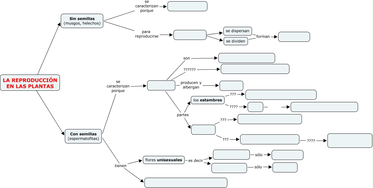 Este Cmap, tiene información relacionada con: La reproducción en las plantas 1, flores unisexuales es decir, sólo, Sin semillas (musgos, helechos) se caracterizan porque, ???? se dispersan, partes los estambres, sólo,, partes, ???? se dividen, ????, los estambres ????, Con semillas (espermatofitas) tienen flores unisexuales, LA REPRODUCCIÓN EN LAS PLANTAS ???? Con semillas (espermatofitas), ???, LA REPRODUCCIÓN EN LAS PLANTAS ???? Sin semillas (musgos, helechos), producen y albergan, Sin semillas (musgos, helechos) para reproducirse, Con semillas (espermatofitas) tienen, ??????, se dividen forman