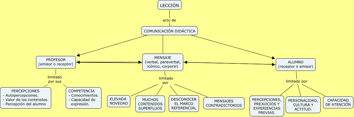 Este Cmap, tiene información relacionada con: Relación métodos expositivos comunicación didáctica, ALUMNO (receptor o emisor) limitado por PERSONALIDAD, CULTURA Y ACTITUD., MENSAJE (verbal, paraverbal, icónico, corporal) ???? PROFESOR (emisor o receptor), COMUNICACIÓN DIDÁCTICA ???? PROFESOR (emisor o receptor), ALUMNO (receptor o emisor) ???? MENSAJE (verbal, paraverbal, icónico, corporal), PROFESOR (emisor o receptor) limitado por sus COMPETENCIA - Conocimientos. - Capacidad de expresión., MENSAJE (verbal, paraverbal, icónico, corporal) limitado por MUCHOS CONTENIDOS SUPERFLUOS, COMUNICACIÓN DIDÁCTICA ???? MENSAJE (verbal, paraverbal, icónico, corporal), PROFESOR (emisor o receptor) ???? MENSAJE (verbal, paraverbal, icónico, corporal), MENSAJE (verbal, paraverbal, icónico, corporal) ???? ALUMNO (receptor o emisor), PROFESOR (emisor o receptor) limitado por sus PERCEPCIONES - Autopercepciones. - Valor de los contenidos. - Percepción del alumno, ALUMNO (receptor o emisor) limitado por CAPACIDAD DE ATENCIÓN, MENSAJE (verbal, paraverbal, icónico, corporal) limitado por MENSAJES CONTRADICTORIOS, MENSAJE (verbal, paraverbal, icónico, corporal) limitado por ELEVADA NOVEDAD, PROFESOR (emisor o receptor) ???? MENSAJE (verbal, paraverbal, icónico, corporal), COMUNICACIÓN DIDÁCTICA ???? ALUMNO (receptor o emisor), LECCIÓN acto de COMUNICACIÓN DIDÁCTICA, ALUMNO (receptor o emisor) limitado por PERCEPCIONES, PREJUICIOS Y EXPERIENCIAS PREVIAS., MENSAJE (verbal, paraverbal, icónico, corporal) limitado por DESCONOCER EL MARCO REFERENCIAL