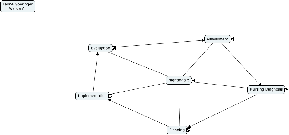 This Concept Map, created with IHMC CmapTools, has information related to: Flo Nightingale Theory, Nursing Diagnosis ???? Planning, Nightingale ???? Assessment, Planning ???? Implementation, Nightingale ???? Implementation, Assessment ???? Nursing Diagnosis, Implementation ???? Evaluation, Evaluation ???? Assessment, Nightingale ???? Evaluation, Nightingale ???? Nursing Diagnosis, Nightingale ???? Planning