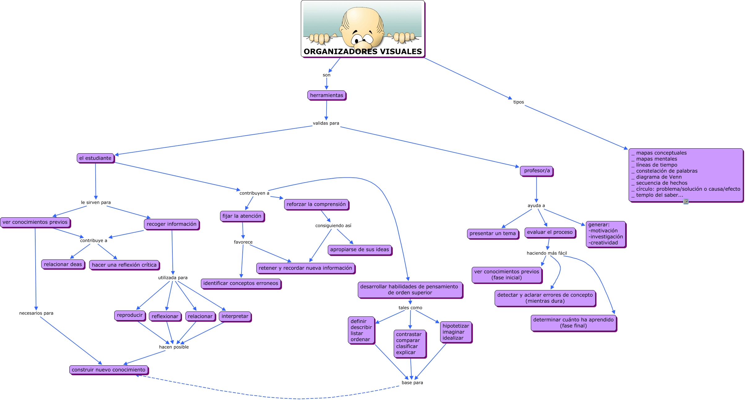 Este Cmap, tiene información relacionada con: Qué son los organizadores visuales, recoger información contribuye a hacer una reflexión crítica, recoger información utilizada para reflexionar, herramientas validas para profesor/a, ORGANIZADORES VISUALES tipos _ mapas conceptuales _ mapas mentales _ líneas de tiempo _ constelación de palabras _ diagrama de Venn _ secuencia de hechos _ círculo: problema/solución o causa/efecto _ templo del saber..., recoger información utilizada para reproducir, desarrollar habilidades de pensamiento de orden superior tales como contrastar comparar clasificar explicar, reforzar la comprensión consiguiendo así apropiarse de sus ideas, reflexionar hacen posible construir nuevo conocimiento, definir describir listar ordenar base para construir nuevo conocimiento, recoger información utilizada para interpretar, relacionar hacen posible construir nuevo conocimiento, hipotetizar imaginar idealizar base para construir nuevo conocimiento, ver conocimientos previos necesarios para construir nuevo conocimiento, evaluar el proceso haciendo más fácil ver conocimientos previos (fase inicial), herramientas validas para el estudiante, fijar la atención favorece retener y recordar nueva información, reproducir hacen posible construir nuevo conocimiento, el estudiante contribuyen a reforzar la comprensión, el estudiante contribuyen a desarrollar habilidades de pensamiento de orden superior, evaluar el proceso haciendo más fácil detectar y aclarar errores de concepto (mientras dura)