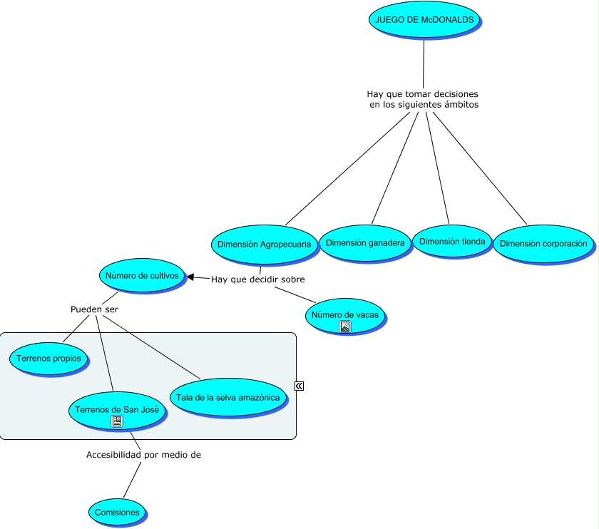 Este Cmap, tiene información relacionada con: Lógica de juego de McDonalds, Número de cultivos Pueden ser Tala de la selva amazónica, JUEGO DE McDONALDS Hay que tomar decisiones en los siguientes ámbitos Dimensión Agropecuaria, Dimensión Agropecuaria Hay que decidir sobre Número de cultivos, Número de cultivos Pueden ser Terrenos de San José, Número de cultivos Pueden ser Terrenos propios, Dimensión Agropecuaria Hay que decidir sobre Número de vacas, JUEGO DE McDONALDS Hay que tomar decisiones en los siguientes ámbitos Dimensión ganadera, Terrenos de San José Accesibilidad por medio de Comisiones, JUEGO DE McDONALDS Hay que tomar decisiones en los siguientes ámbitos Dimensión corporación, JUEGO DE McDONALDS Hay que tomar decisiones en los siguientes ámbitos Dimensión tienda