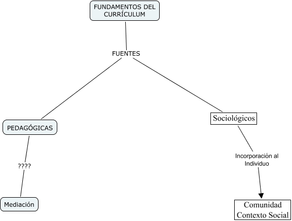 Este Cmap, tiene información relacionada con: FUNDAMENTOS DEL CURRÍCULUM, Sociológicos Incorporación al Individuo Comunidad Contexto Social, FUNDAMENTOS DEL CURRÍCULUM FUENTES Sociológicos, PEDAGÓGICAS ???? Mediación, FUNDAMENTOS DEL CURRÍCULUM FUENTES PEDAGÓGICAS